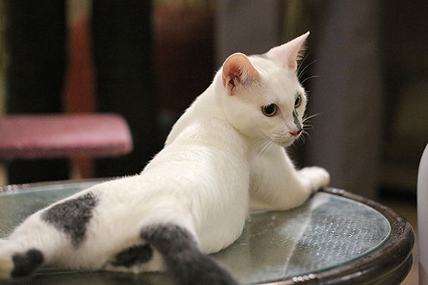 来客時の隠れ場所のお気に入りは太宰治全集の上だそうです。