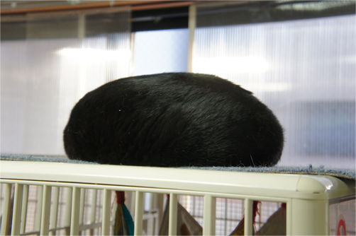 ケージの上には巨大なおはぎ?